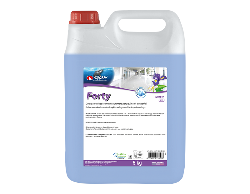 Detergente per la manutenzione ordinaria di tutti i tipi di pavimenti e per le superfici dure lavabili. Detergente a schiuma frenata, non necessita di risciacquo ed è particolarmente idoneo per l’impiego con macchine lavasciuga. Presenta una fresca profumazione che lo rende idoneo per ogni tipologia di ambiente.
